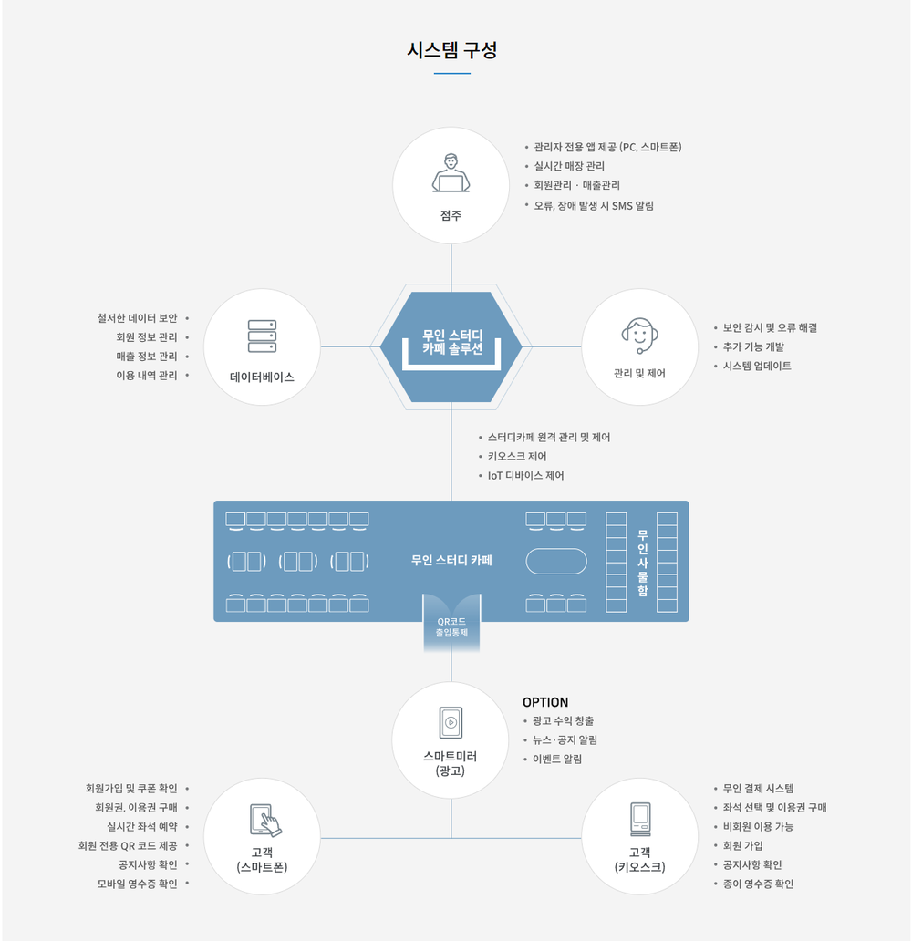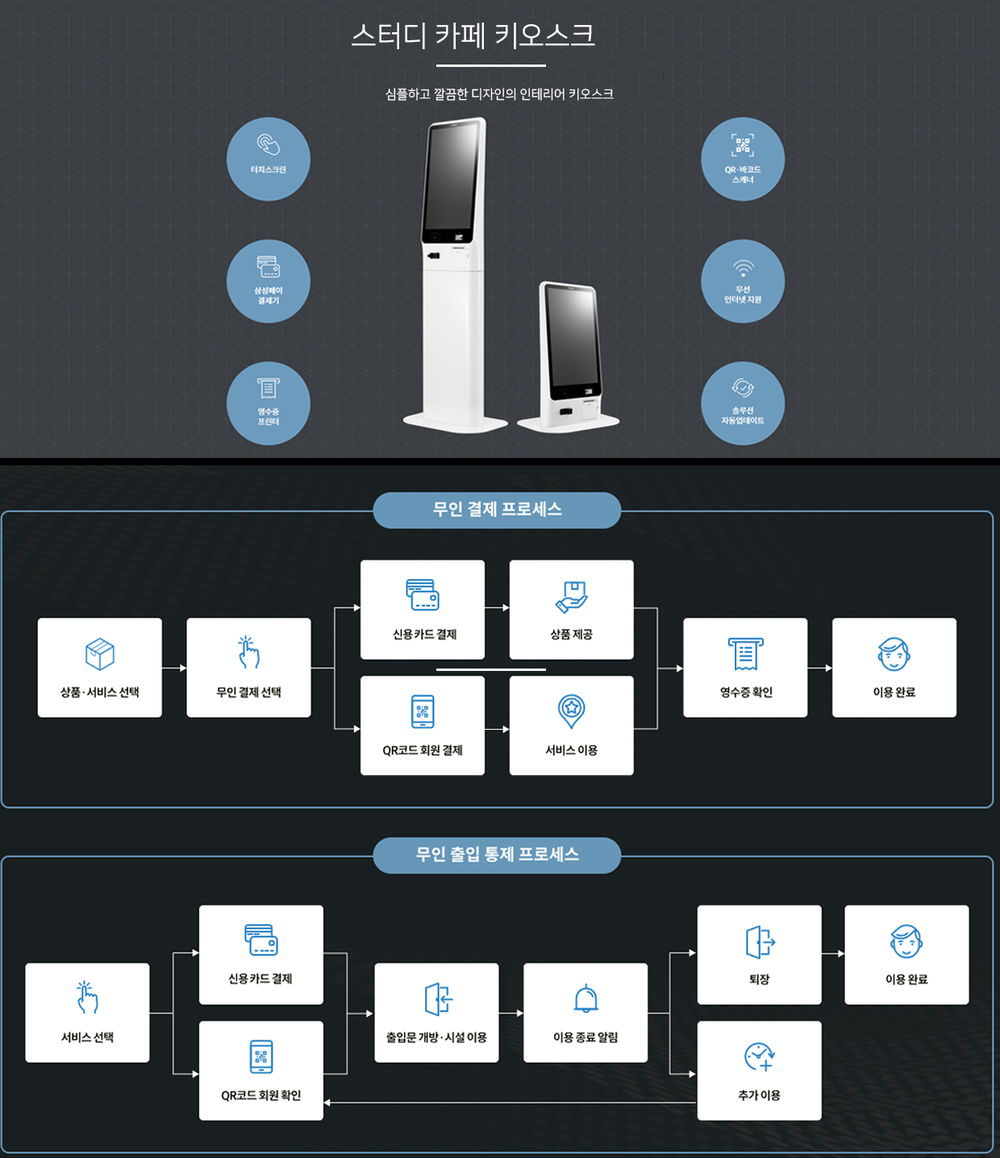 무인 스터디카페 솔루션이 적용된 키오스크 판매합니다.