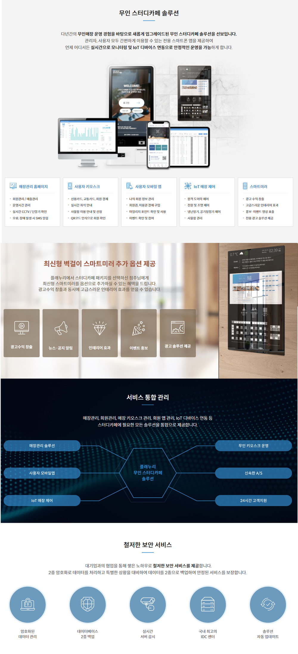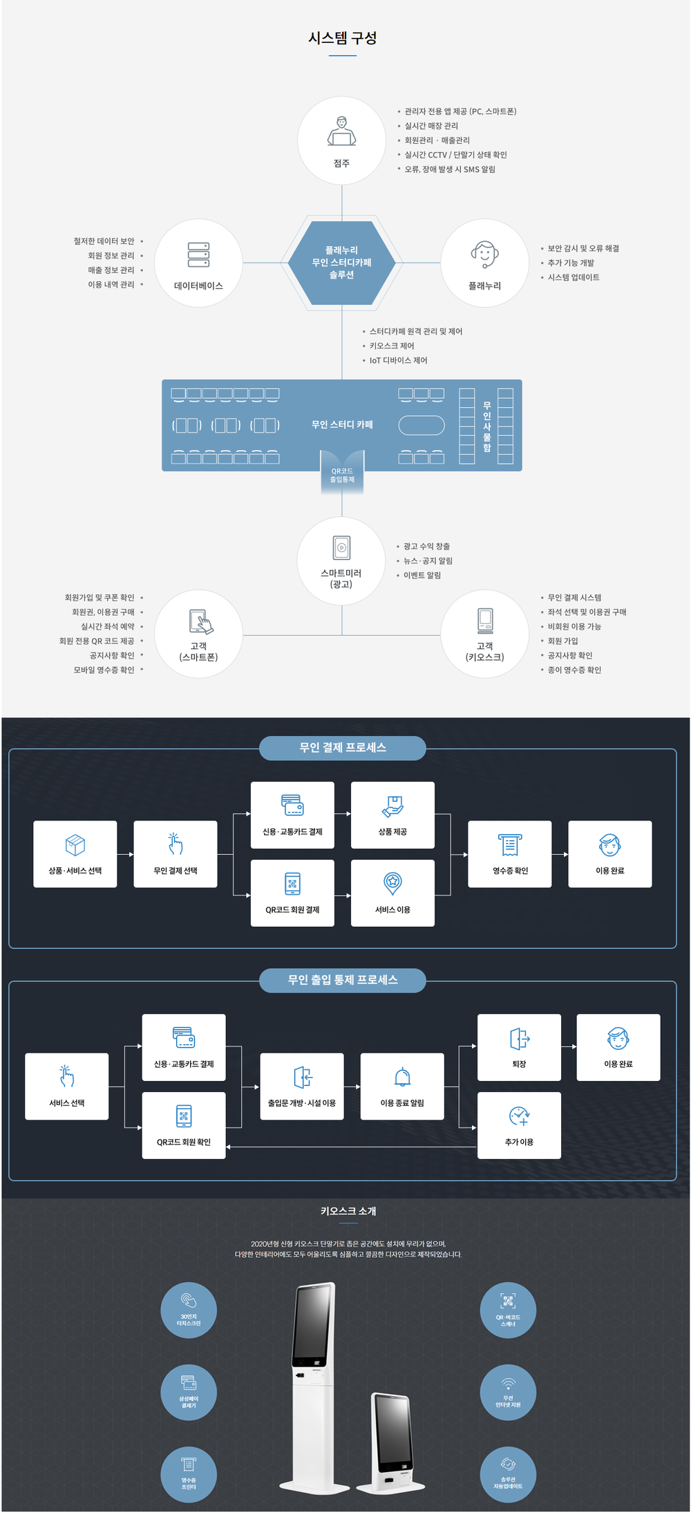 무인 스터디카페 솔루션이 적용된 키오스크로 년간 계약형입니다.